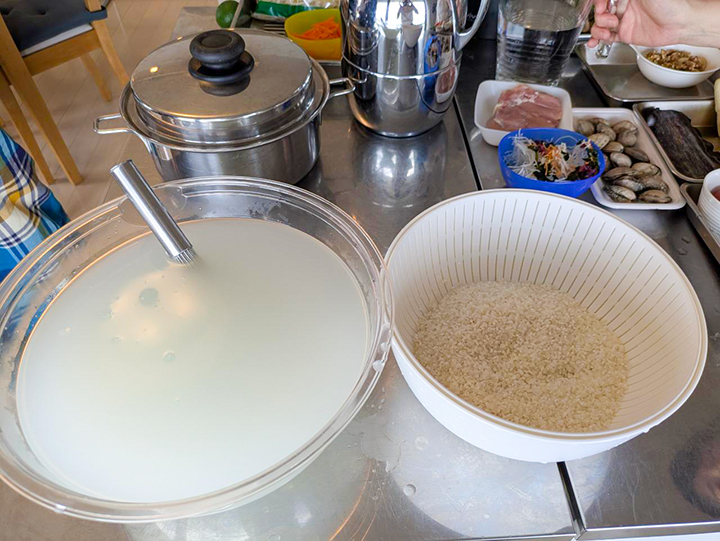 教室ではまず、お米を洗うところからスタート。お米も50℃で洗うと、ふっくら美味しく炊き上がります。