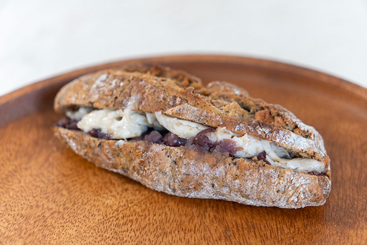 胡桃と紅茶を練りこんだハード系のパンが、あんこの優しい甘さとバターのコクを引き立て、相性は抜群。