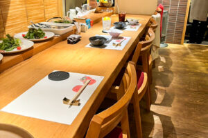 カウンター席や最大12名入れる個室もあるので、家族や友達と来ても、