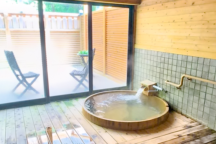 炭酸水素塩泉!久住の四季が味わえる「大地乃湯」は、入れ替え式家族湯!