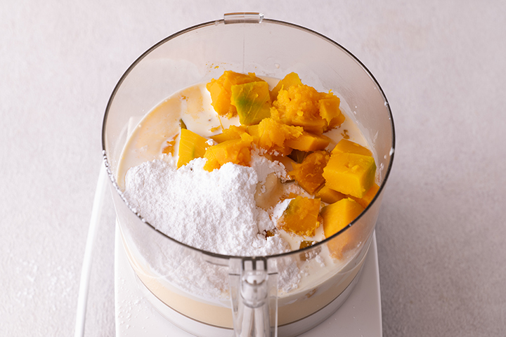 ②フードプロセッサーに全ての材料を入れて、滑らかになるまで撹拌する。