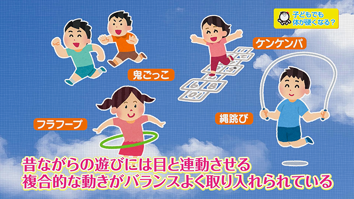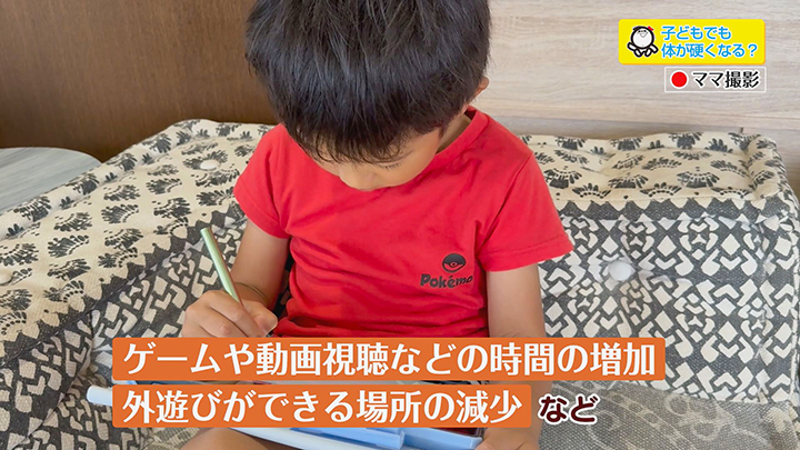 ゲームや動画視聴などの時間の増加、外遊びができる場所の減少など、 全身を使って遊ぶ機会が少なくなったことで、日常生活の中で鍛えられていた筋力や柔軟性が低下し、体が硬くなるという状態になるのです。