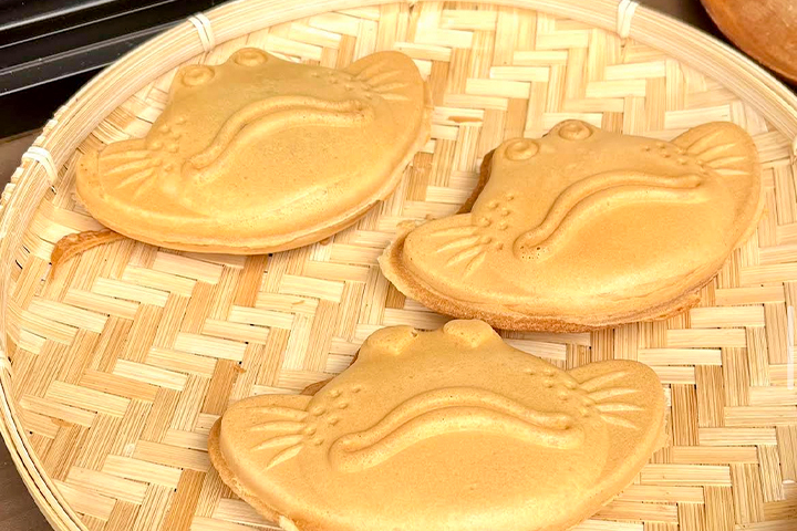 オリジナルのムツゴロウの型で作られていて、目がハートのものがあったり可愛い。焼きたてで提供してもらえるのも嬉しい特徴。