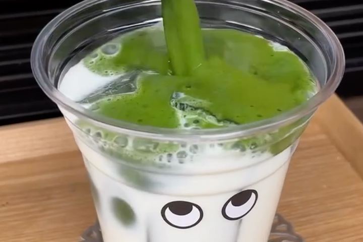 自分で抹茶をたてることができる茶道体験型のラテもおすすめ♪スタッフさんに抹茶の粉とお湯を用意してもらったら、自分で抹茶をたてるよ。