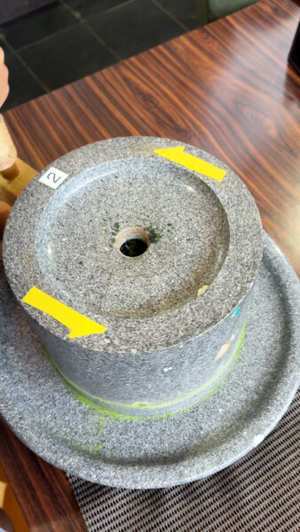 石臼は結構重かったから気合いいるけど、小1息子も少し補助しただけで、ほぼ1人で出来たよ。親が補助すれば子どもだけで体験可能でした。