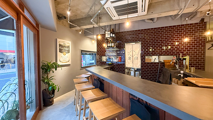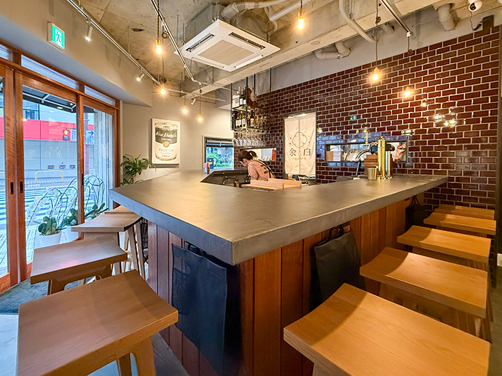 ほっと一息つける…心の余白となれる場所になるようにと名付けられた店名の「余白」。店内はコの字型のカウンターのみで、肩肘張らず心地よく距離感を楽しめます。