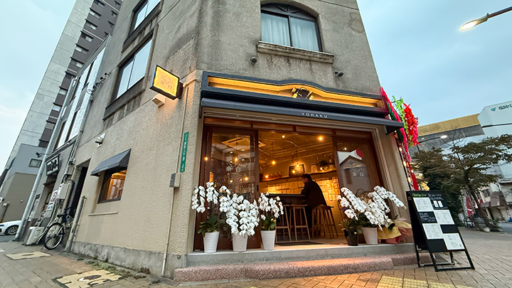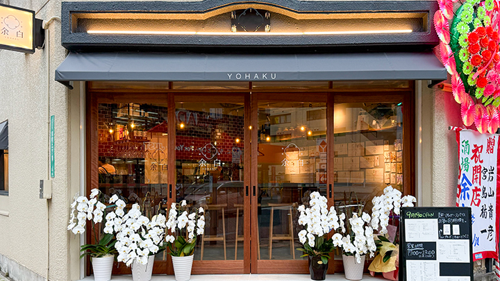 〝居酒屋以上バル未満〟麹や糠、スパイス料理などを提供する小料理屋さん「カウンター酒場 余白(よはく)」が9月19日オープンしました。店前にはたくさんのお祝いのお花に彩られ、通りに面した素敵なお店がパッと目を惹きます。