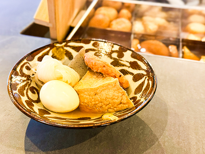 つるが豆腐の厚揚げや紅しょうが天など、天然素材を使用したこだわりのおでんは、これからの季節にぴったり!
