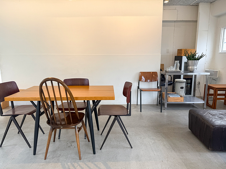 2階は白壁に光が差し込む明るい空間で、テーブルや椅子のデザインも軽やか。