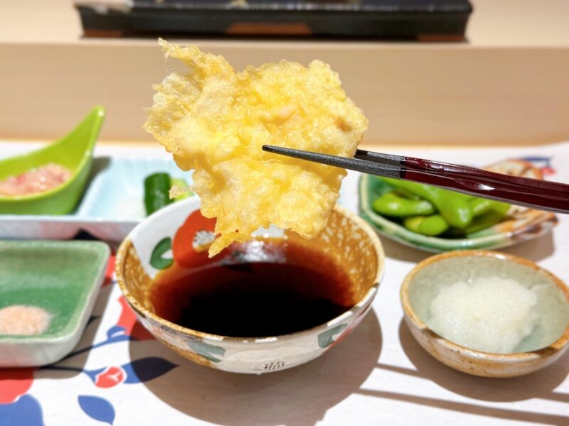 アツアツの天ぷらを一口いただくたびに、「サクッ」という心地よい音と香りが広がり、まさに五感で楽しむことができますよ。