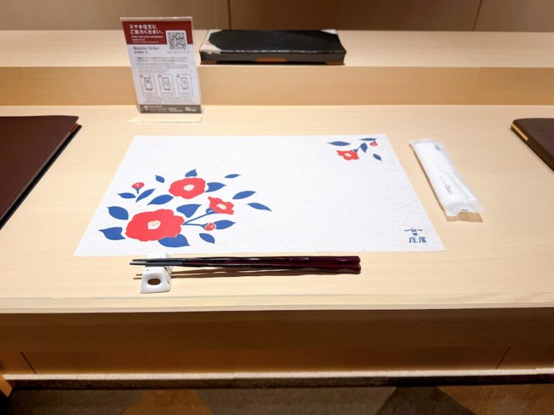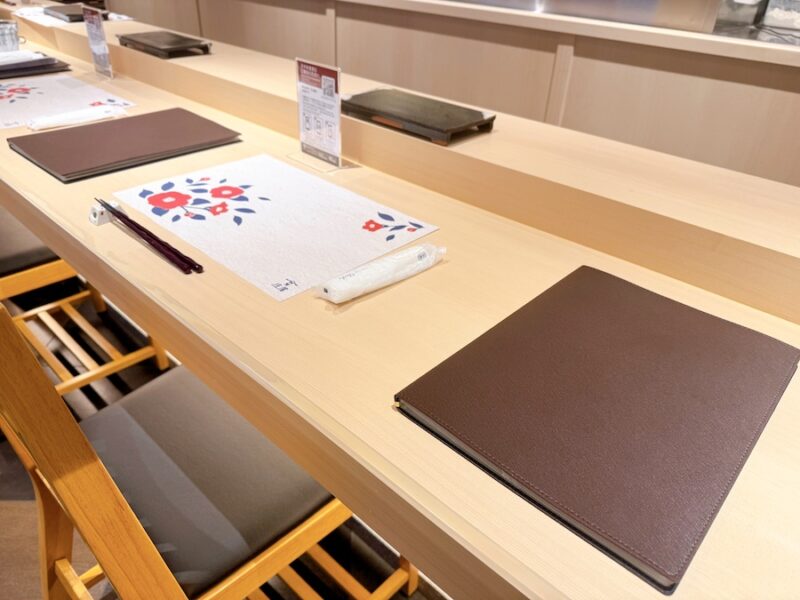 木を基調とした店内は、格式のある上品な雰囲気。博多座やリバレインという周辺エリアとの調和を意識した、高級感と落ち着きを兼ね備えた空間です。席数は25席で、カウンター席が17席、テーブル席が4名席×2卓となっています。