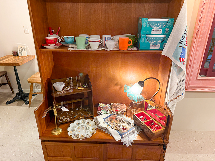 店内はアメリカから取り寄せたアンティーク家具が各所に配され、席ごとに表情が違うのが魅力。