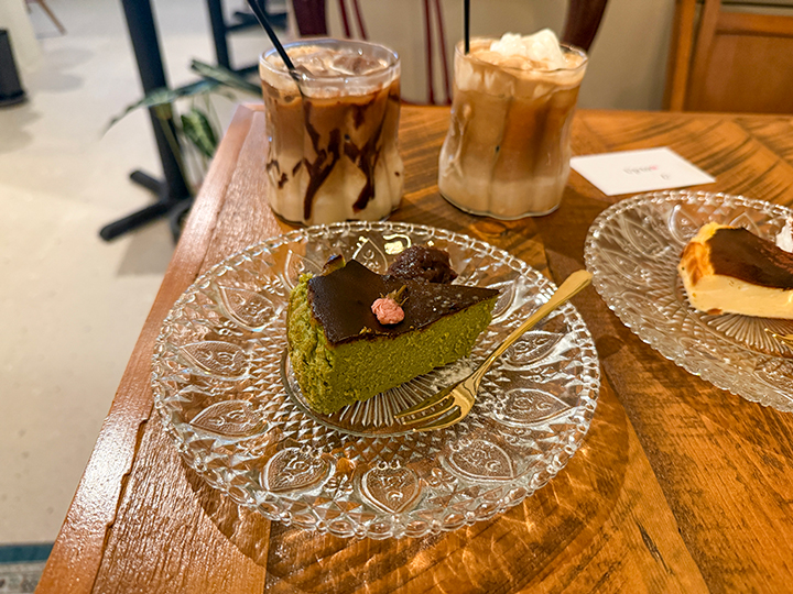 抹茶バスクチーズケーキは、抹茶のほろ苦さとチーズのまろやかさが見事に調和。