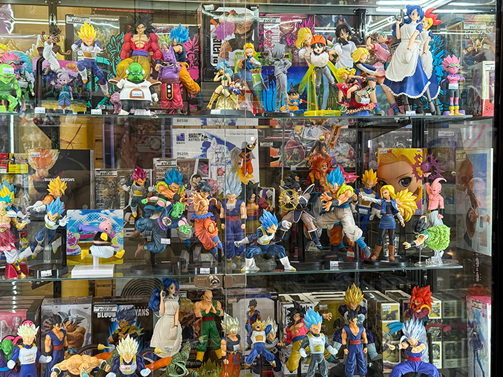 BOOK OFF NYでは、主軸ジャンルに加えて人気を伸ばしているのがフィギュアです。コロナ前はスパイダーマンなどの米国キャラクターが中心でしたが、近年は日本アニメの人気が高まり、ドラゴンボール、セーラームーン、鬼滅の刃など日本発キャラクターが主役に躍り出ています。