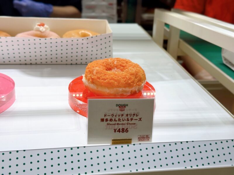 『ドーウィッチ オリグレ 博多めんたい&チーズ』(486円)は博多の定番、明太子がまさかのドーナツに…!オリジナル・グレーズドに博多めんたいソースを塗り、中にはコクのあるチーズクリームを挟んでいます。隠し味のガーリックバターソースがチーズとめんたいの旨味を引き立てていて、明太子なのにスイーツとして食べられる不思議さにも注目ですよ♪※12:00頃~販売。通年販売予定。