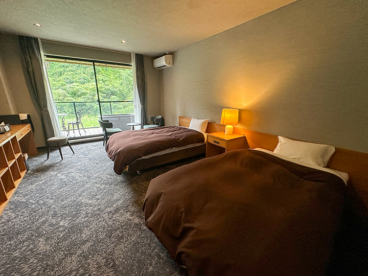 窓の外には大自然!露天風呂付のお部屋でリラックス