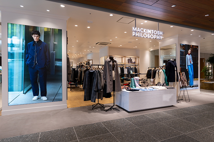 ワン・フクオカ・ビルディング3Fの「MACKINTOSH PHILOSOPHY」は、英国の老舗ブランド「マッキントッシュ」のセカンドライン。
