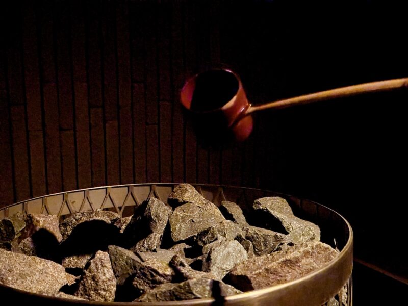 サウナ室にはMETOS社の大型ヒーター「iki」が鎮座し、セルフロウリュをすると一気に熱気が広がります。空気が循環する構造となっているので息苦しさがなく、友人と会話を楽しみながら入っていられるのも特徴です。