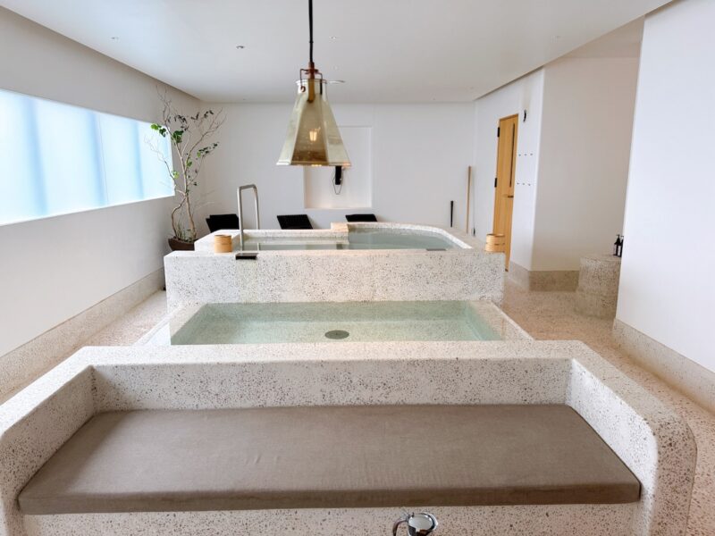 まず足を踏み入れて驚いたのは、その広さ!61.38㎡という贅沢な空間に、お湯と水風呂が中央にレイアウトされています。