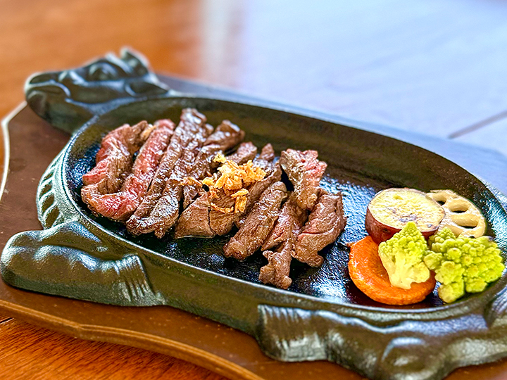 海峡スペシャルコース(11,500円)の黒毛和牛鉄板ステーキ。