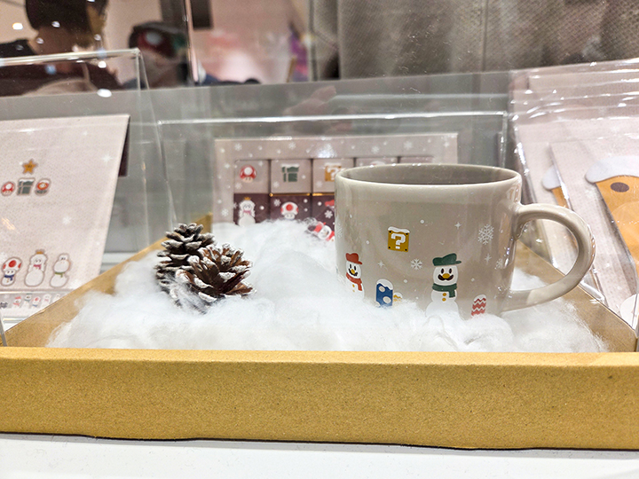冬季シリーズ「ウィンターマリオ」は大人気。マグカップ、ブランケット(畳むとハテナボックスになる!)はおすすめです。