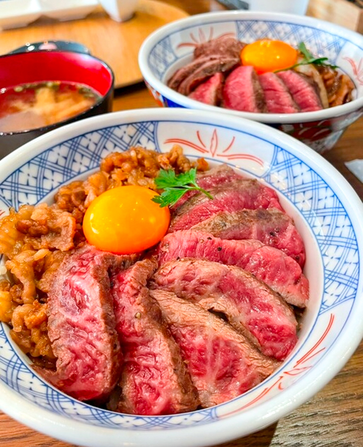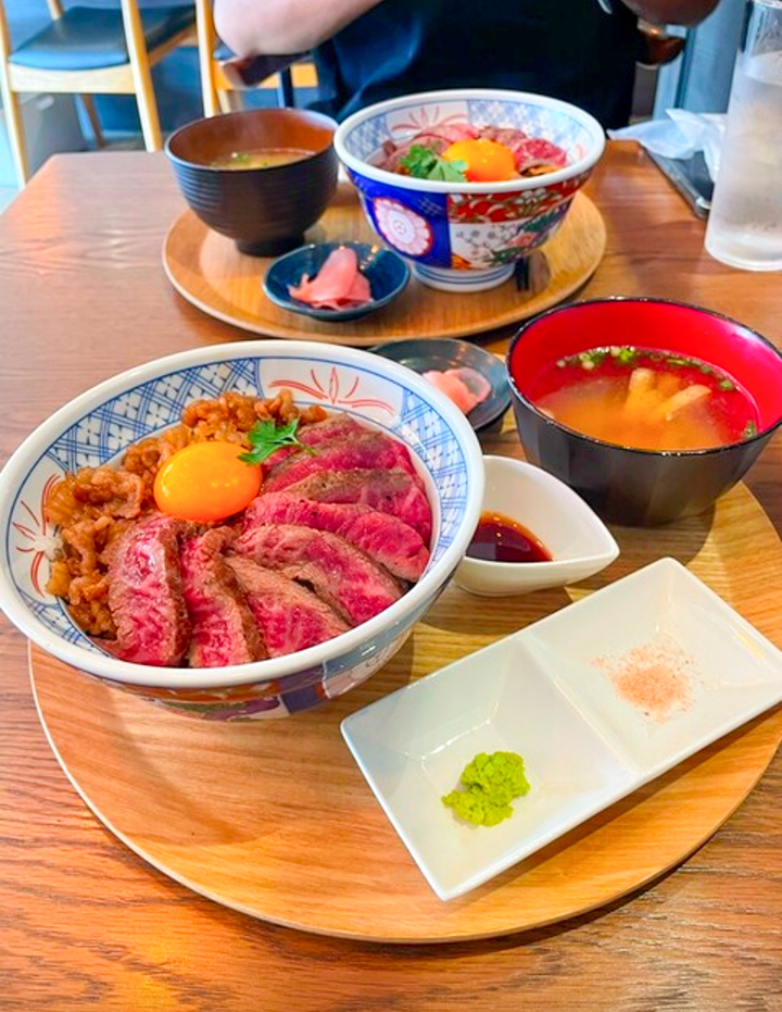 ランチ限定のノダニク丼は3種のお肉の部位を一度に楽しめる贅沢丼。部位はその日の仕入れによって変わり、この日は赤身・イチボ・焼肉の3種でした。