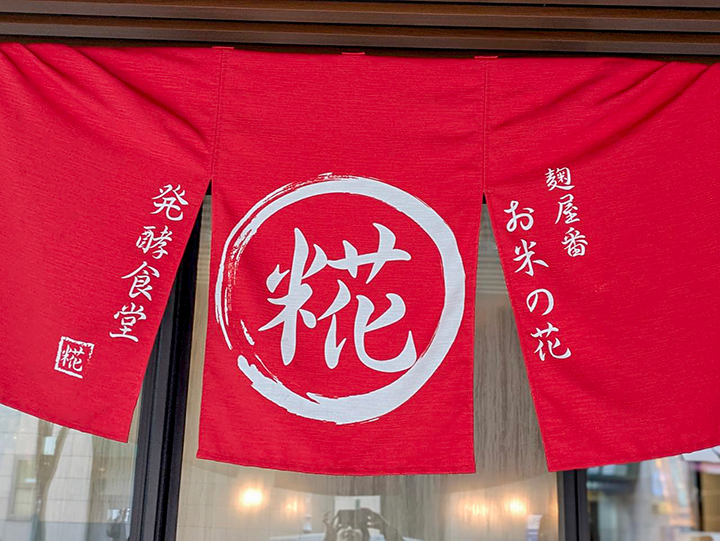 2024年10月にオープンした「麹屋番お米の花」。店内に飾られた暖簾「食は食べるお医者様」の通り、身体に優しくて健康的なメニューが提供される人気店です。昼は麹を使った「発酵プレートランチ」、夜は麴を使った「おばんざい」を中心に健康的なお食事とお酒を楽しむことができます。