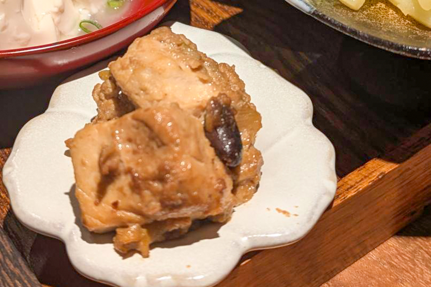 麹菌で長期熟成させた大豆からできる豆鼓は、味噌に似ていますが、それ以上に濃厚で塩気が強く、発酵のコクと旨味があります。そこに赤味噌の濃いコクが加わり、まるで一晩寝かせたような熟成された深みのある和風の麻婆豆腐でした。
