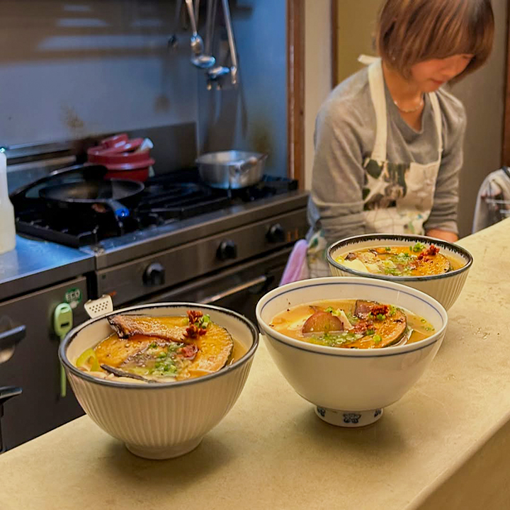 締めのおにぎりは、手で握った温度がまだ残っていて、旬野菜がごろっと入った味噌汁は、体がゆるむようなやさしい味。