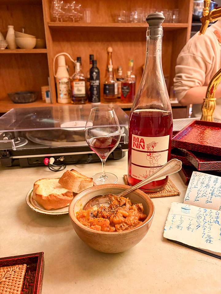 棚にはワイン、日本酒、ラム酒がずらり。お酒の扱いも、食材への向き合い方も、どれも「知識」より先にある好奇心と愛情の積み重ねのように感じます。