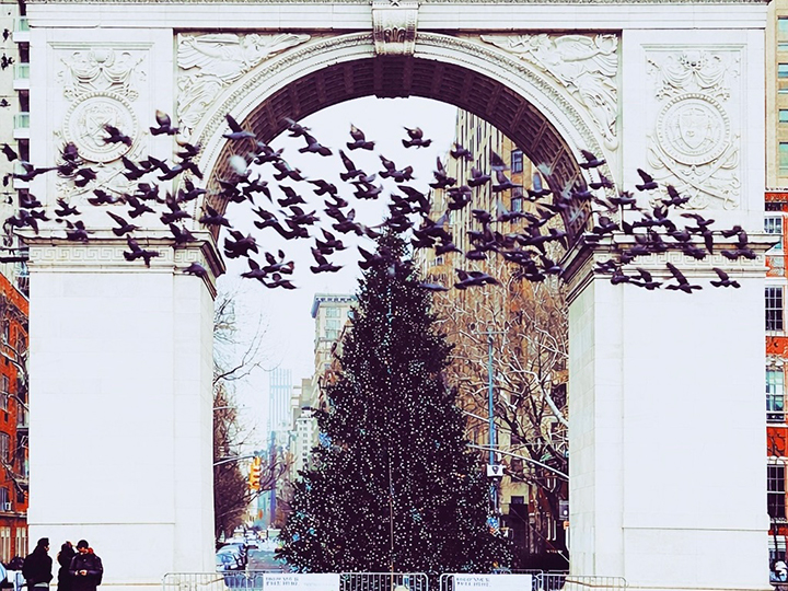 マンハッタンの摩天楼とは対照的な、レンガや石畳の趣きある街並み。大きな凱旋門のあるワシントンスクエアパークでは、ピアノを演奏する人、のんびりと聞き入る通行人、ドッグランで楽しそうに跳ねる、ぬいぐるみのような犬たち。