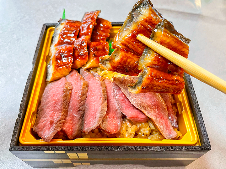 鹿児島・魚太から登場した贅沢な裏メニューが“鹿児島和牛ステーキ&うなぎ弁当【2,980円(税込み)】“