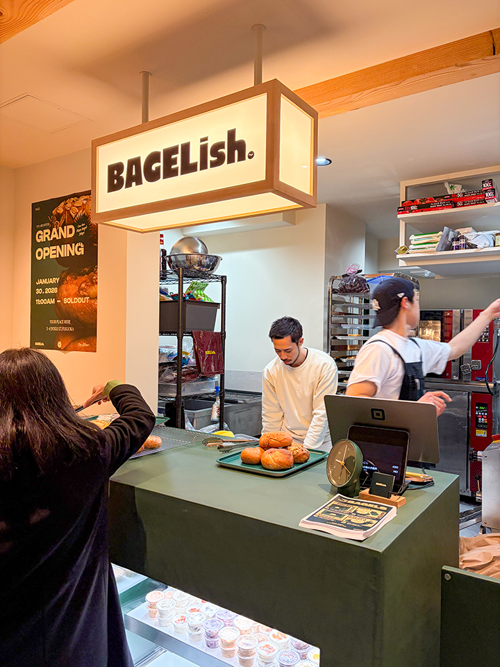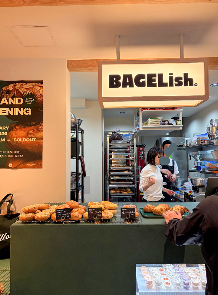 薬院大通駅徒歩8分、浄水通りから入った閑静な住宅街にある「BAGELish.」。店主は、消防士を10年務めたあと、東京で人気の「テコナベーグル」で修行され、この度福岡にオープン!