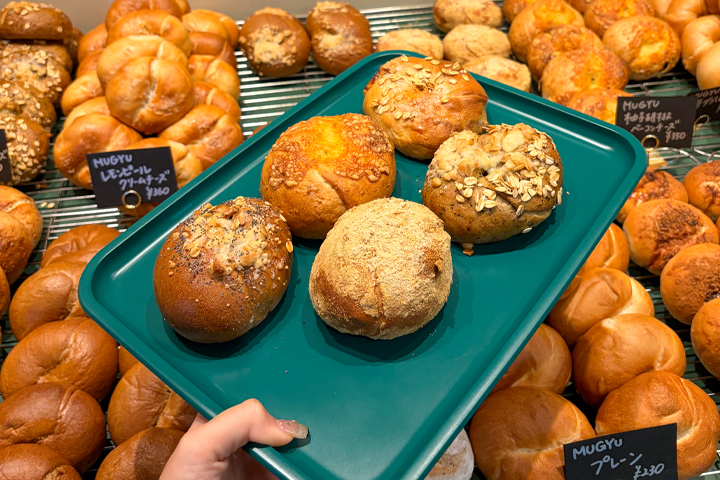 もちもちの生地で、ほうじ茶あんこクリームチーズやレモンピールなど、この日は30種類くらい並んでいて選ぶのもすごく楽しかった!焼きたてのウインナーパンもピリ辛でうますぎた〜!