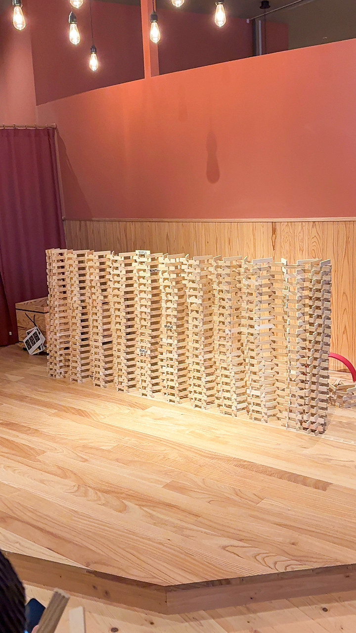 未就学児の子が多くて小学生も楽しめるかなぁと思ったけど、3時間しっかり遊び尽くした。木のぬくもりを感じる優しいおもちゃがたくさんあって、子どもたちも自然と集中。むしろ大人もハマる。