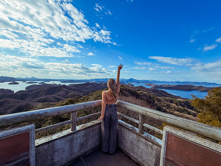 展望台から見渡す浅茅湾の景色は、リアス式海岸が広がる圧巻の風景。