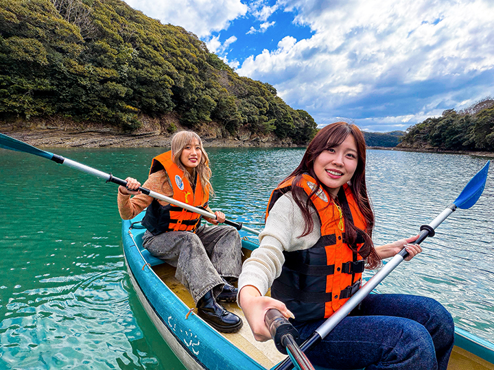 あそうベイパークでは浅茅湾の穏やかな海でカヌー体験が楽しめます。