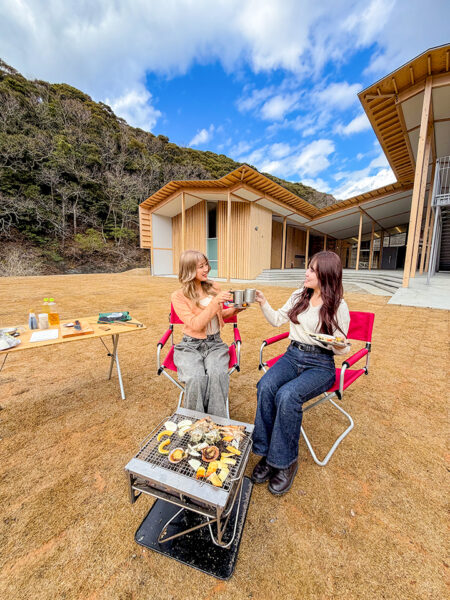 目の前に広がる浅茅湾の景色を眺めながら自然の中でBBQを楽しめる贅沢なスポット。