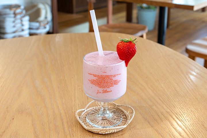 また、季節限定で苺のスムージーも注文。苺の爽やかな甘みと酸味とフレッシュな風味がダイレクトに感じられます。