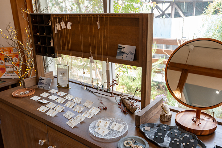店内には作家さん6人の委託販売アクセサリーや雑貨、消しゴムハンコ、お母さんの焼き菓子なども売られています。