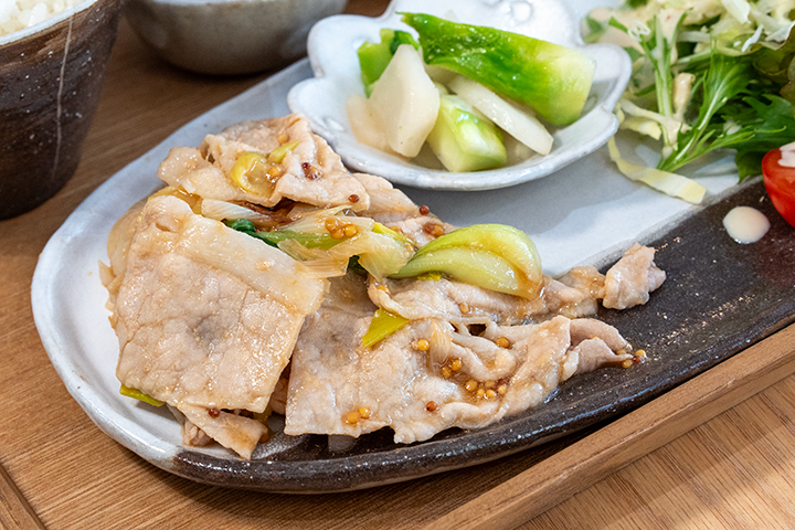 この日のメインは「糸島華豚の蒸し煮~しょうゆ粒マスタード風味~」。ジューシーで脂身が甘いのが特徴の糸島華豚に香ばしい醤油と粒マスタードの爽やかな酸味が加わり、さっぱりしつつもコクのある味わいに。