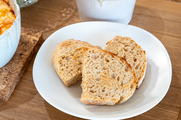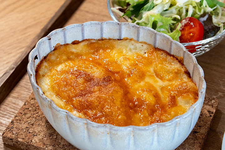 また、オーブンで焼かれた表面のチーズが香ばしく、ポテトとひき肉をさらに引き立てます。お母さん手づくりのパンとの相性も抜群でした。