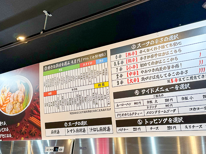 ②レジでスープと辛さ、サイドメニュー、トッピングを選びます