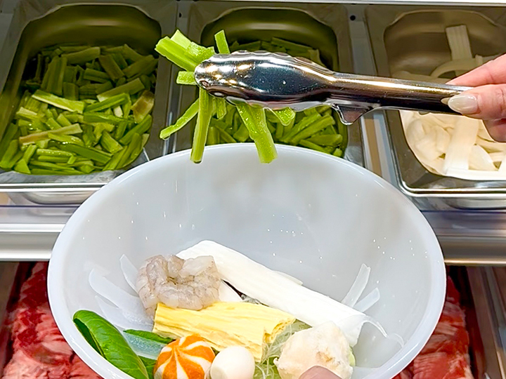 ①まずは50種類以上の具材からセルフで自由に選びます。