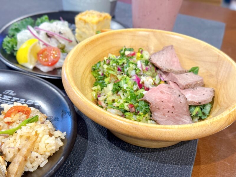 特製のドレッシングをかけ、さらに自家製の「博多和牛のローストビーフ」をたっぷりのせていただくのが至福の味わい方です♪