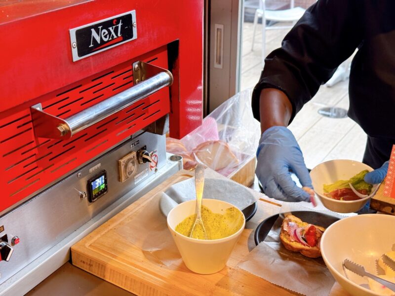 さらに、270度の専用石窯を使い、目の前で約20秒で焼き上げてくれる「石窯サンドウィッチ」も大人気。