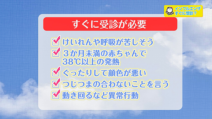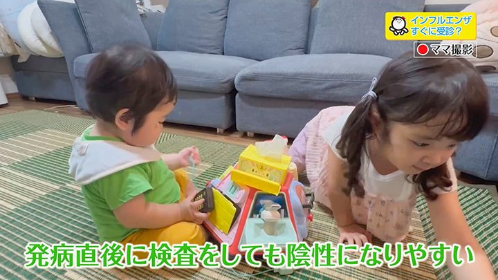 発症直後はウイルス量が少なく、検査をしても陰性と判定されやすいためです。しかし、痙攣があったり、呼吸が苦しそうなど、他にも次の症状がある場合は、すぐに受診が必要です。