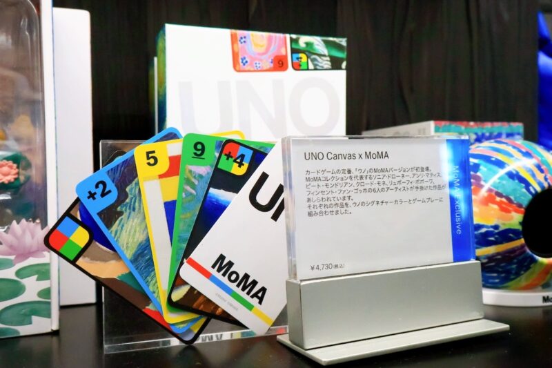 ままた、カードゲームの定番をアレンジした「UNO Canvas x MoMA」(4,730円 税込)も登場。マティスやモネ、モンドリアンなど、MoMAコレクションを代表する6人のアーティストの作品があしらわれており、遊ぶだけでなく飾っておきたくなる美しさです。