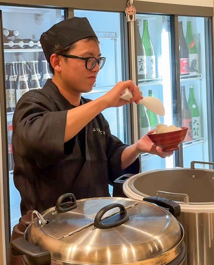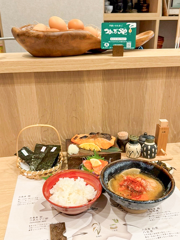 深夜1時から朝10時まで営業の「ふくおかごと」では、福岡の食材だけで作られる「こだわりの朝ごはん」が楽しめます。