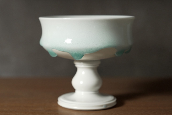 西さんの作品のの中でも特に目を引くのが「雫」シリーズ。窯の中で釉薬が液体状に溶けて流れ出し、温度が下がると固まります。その特徴を活かして表現されたのが雫シリーズです。同シリーズは湯呑みやデザートカップなど多岐に渡り、全国各地で行う個展では即日完売になるほどの人気。セレクトショップなどからも引き合いがあり、陶芸好き以外からの注目も集めています。今回は、スイーツの盛り付けなどにぴったりなデザートカップを抽選で1名様にプレゼントします。液体の自然な流れによって生み出されているデザインなので、世界にひとつだけの一点ものです。